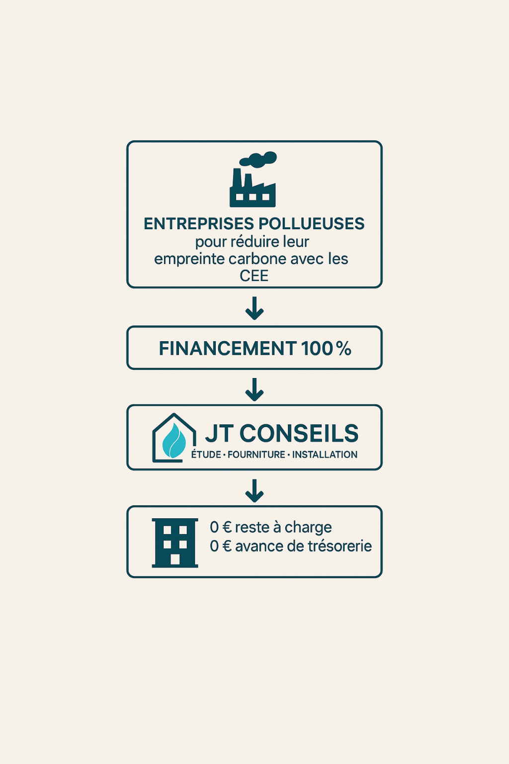 Le financement provient du dispositif national des Certificats d’Économies d’Énergie (CEE) : les fournisseurs d’énergie financent vos travaux pour compenser leurs obligations environnementales.
